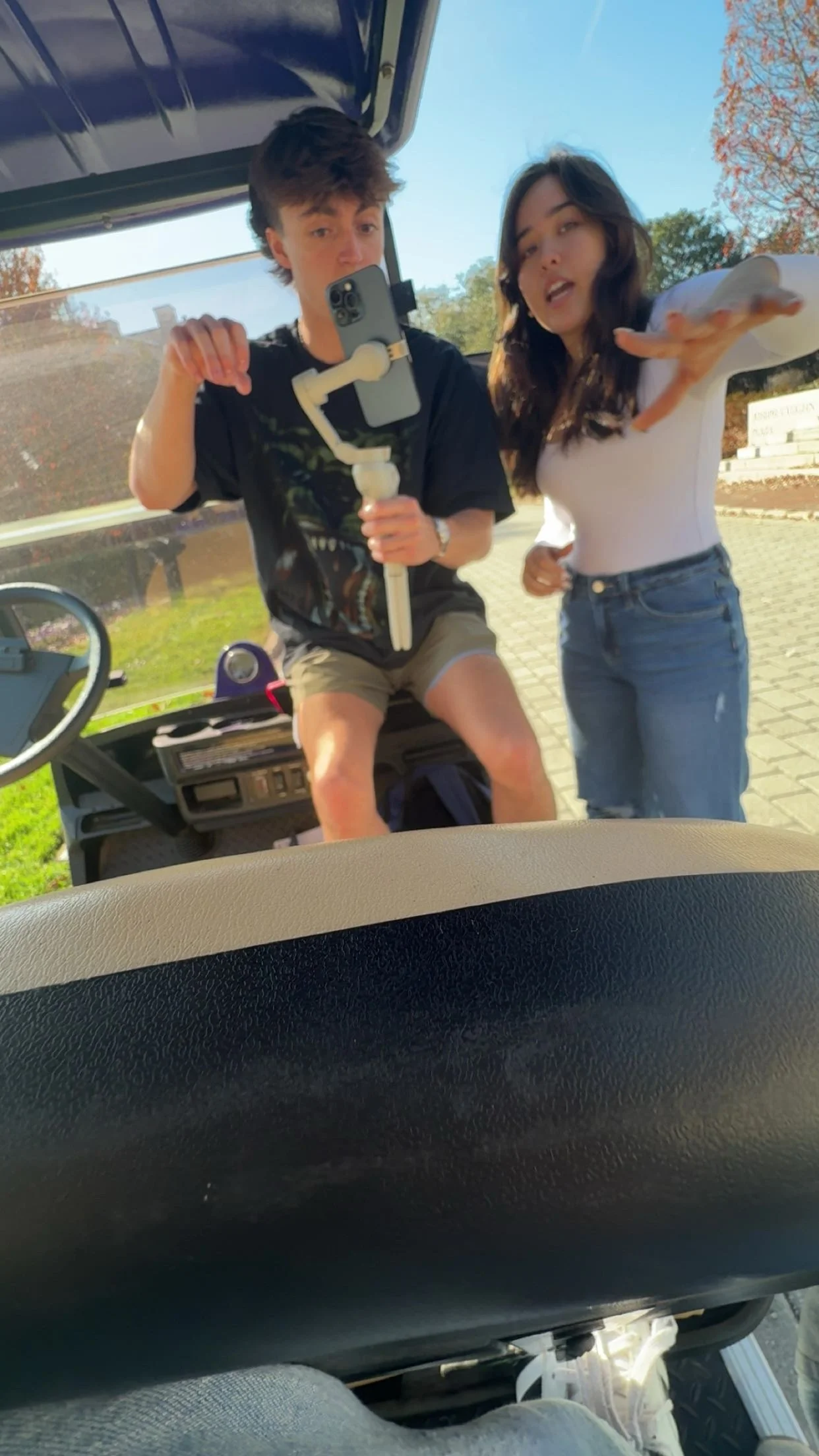 As Katelyn explained that I was going to start my shift as a plant for her segment, asking Mariam Nguyen, Furman’s student body president for the 2025-2026 academic year, I was nervous about how my energy would come across on screen; however, I had nothing to fear as I got more and more comfortable. Funnily enough, we filmed my segment about four times until we got it right. The framing composition assignment greatly helped with this, since Katelyn didn’t want her body just lingering in the corner of the screen as she drove. Over time, I helped my fellow student workers adjust the gimbal to achieve the perfect composition, and that wouldn’t have been possible without Digital Storytelling. Every time we filmed, I learned that I can be as natural as I want in front of a camera, and really, there’s nothing to worry about. If you mess something up, you can retake it! Even if this isn’t the same for live television, with practice comes perfection, and this was a great takeaway from this experience. Furthermore, I also learned I am highly adaptable. Even after working the camera or acting as a plant, I had to quickly learn many other roles to truly assist with the filming of this segment, like driving a golf cart and producing questions about Furman’s history on the fly. Not only did this show me my adaptability, but it also allowed me to channel my creativity by asking niche questions about Furman and creating scenic routes while on the golf cart.
